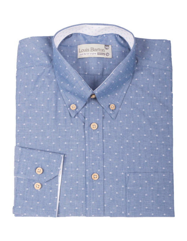 Camisa Manga Larga Moldería Informal en Chambray Puntos Blancos - Moldería informal