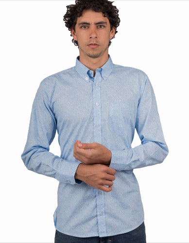 Camisa Manga Larga Estampada Formas Geométricas Color Azul - Moldería informal