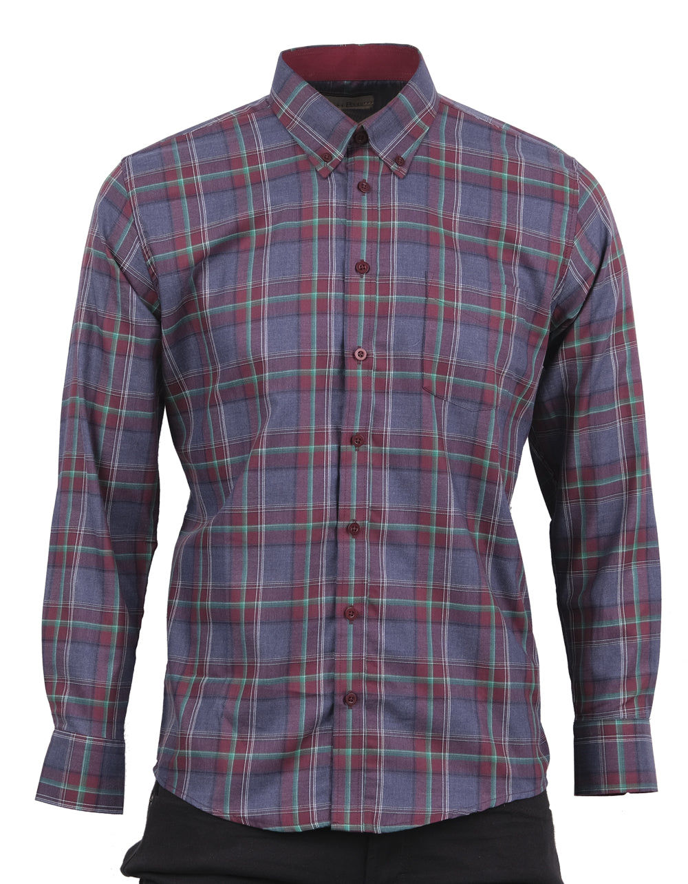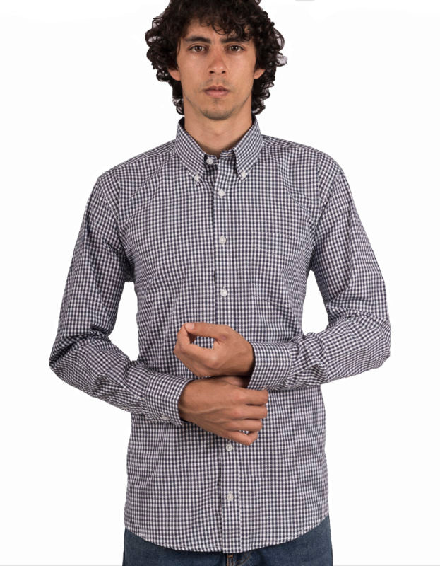 Camisa Manga Larga Cuadros Azul Negro y Vinotinto - Moldería informal