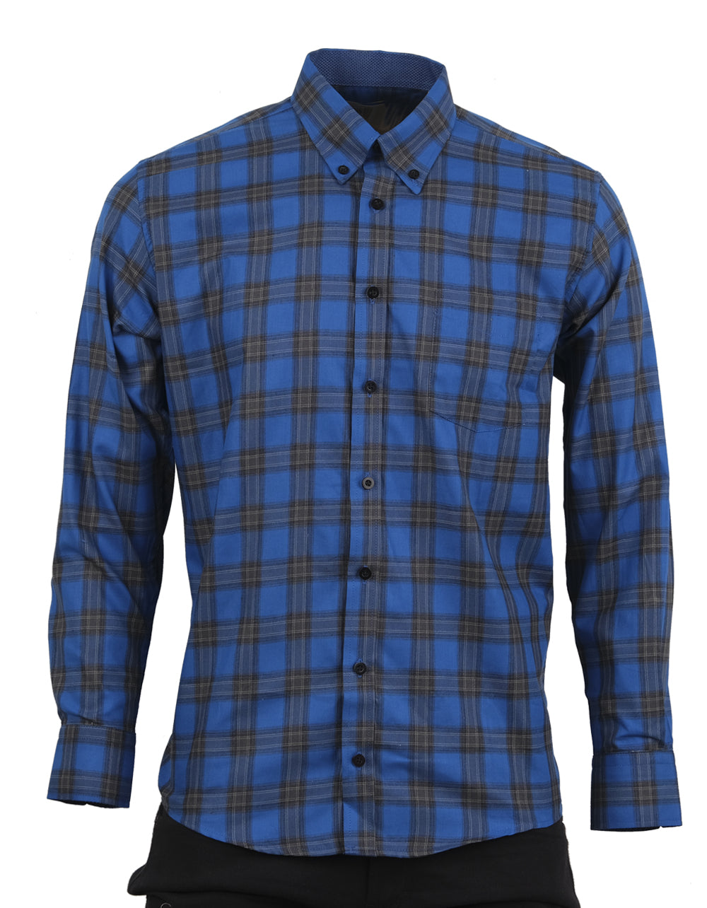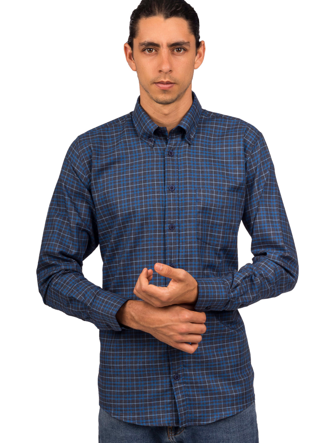 Camisa Manga Larga Cuadros Azules Oscuros y Claros - Moldería Clásica
