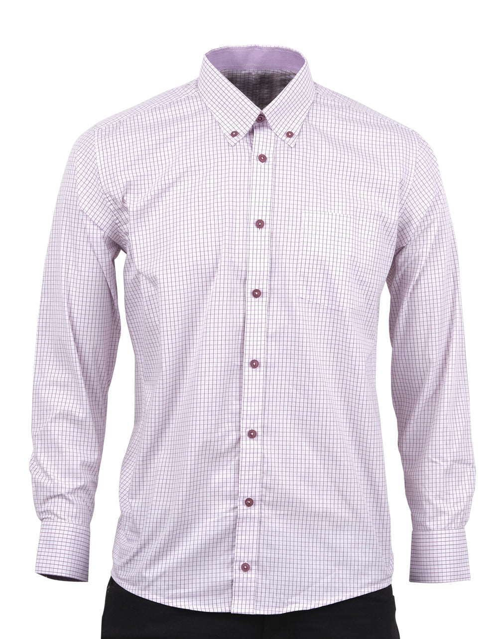 Camisa Manga Larga Blanca Cuadros Lila - Moldería informal