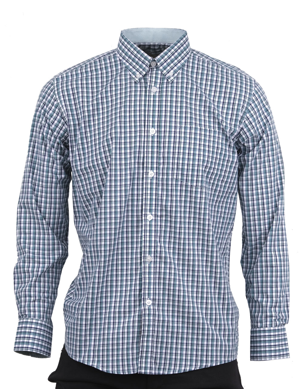 Camisa Manga Larga Cuadros Blancos Verdes y Azules - Moldería informal