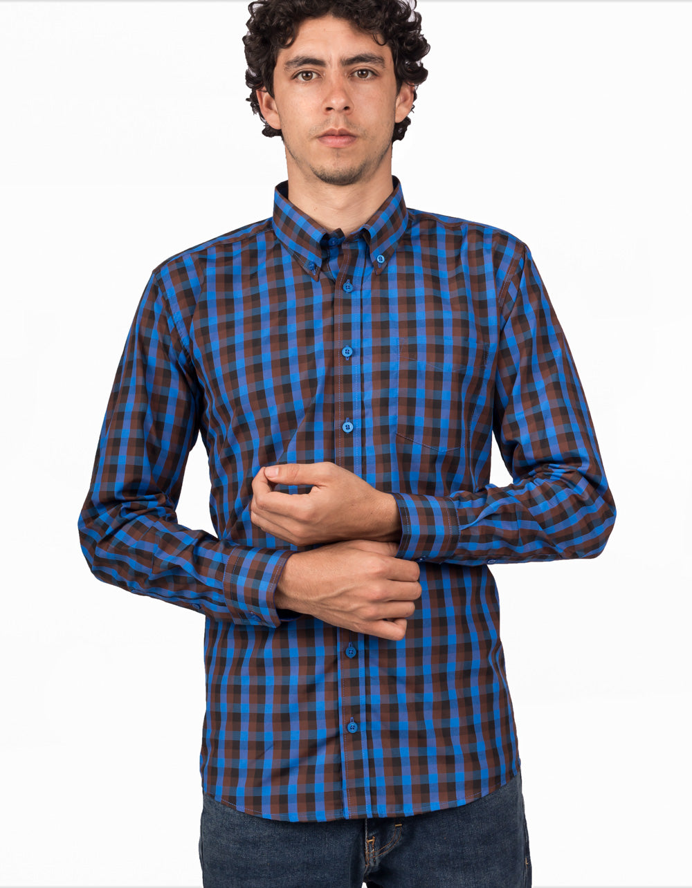 Camisa Manga Larga Cuadros Azules - Moldería informal