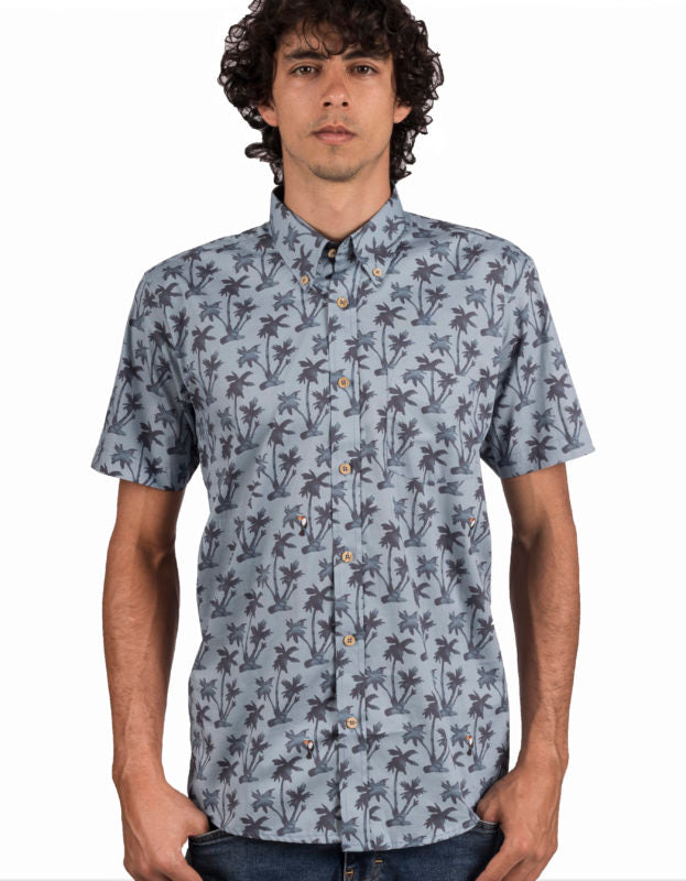 Camisa Manga Corta Estampado Palmas Azúl Petróleo - Moldería informal