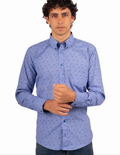 Camisa Manga Larga Estampada Formas Geométricas Color Azul - Moldería informal