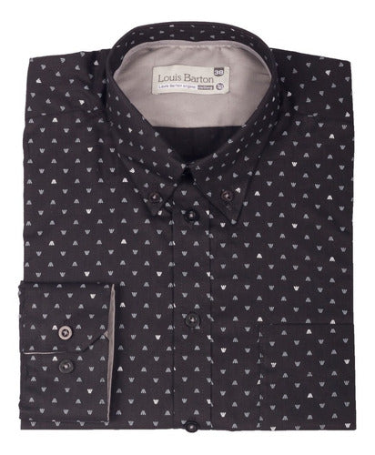 Camisa Manga Larga Negra Print Triángulos Blancos Y Grís - Moldería informal