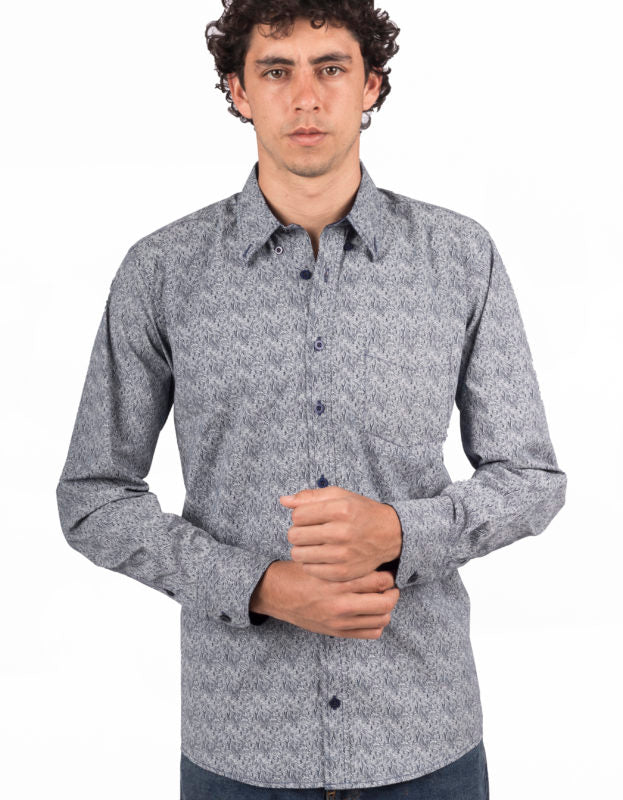 Camisa Manga Larga Azul Oscuro Print Olas - Moldería Informal