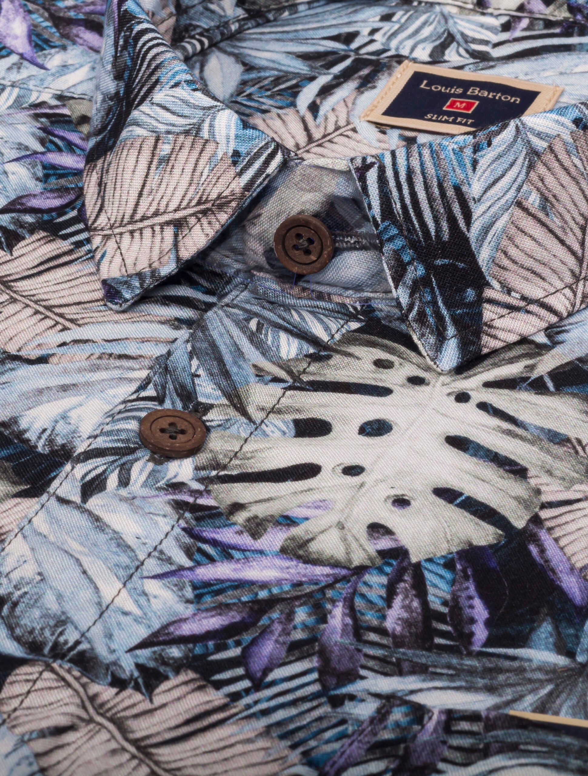 Camisa Manga Corta en Chalis, Estampado Flores - Moldería slim